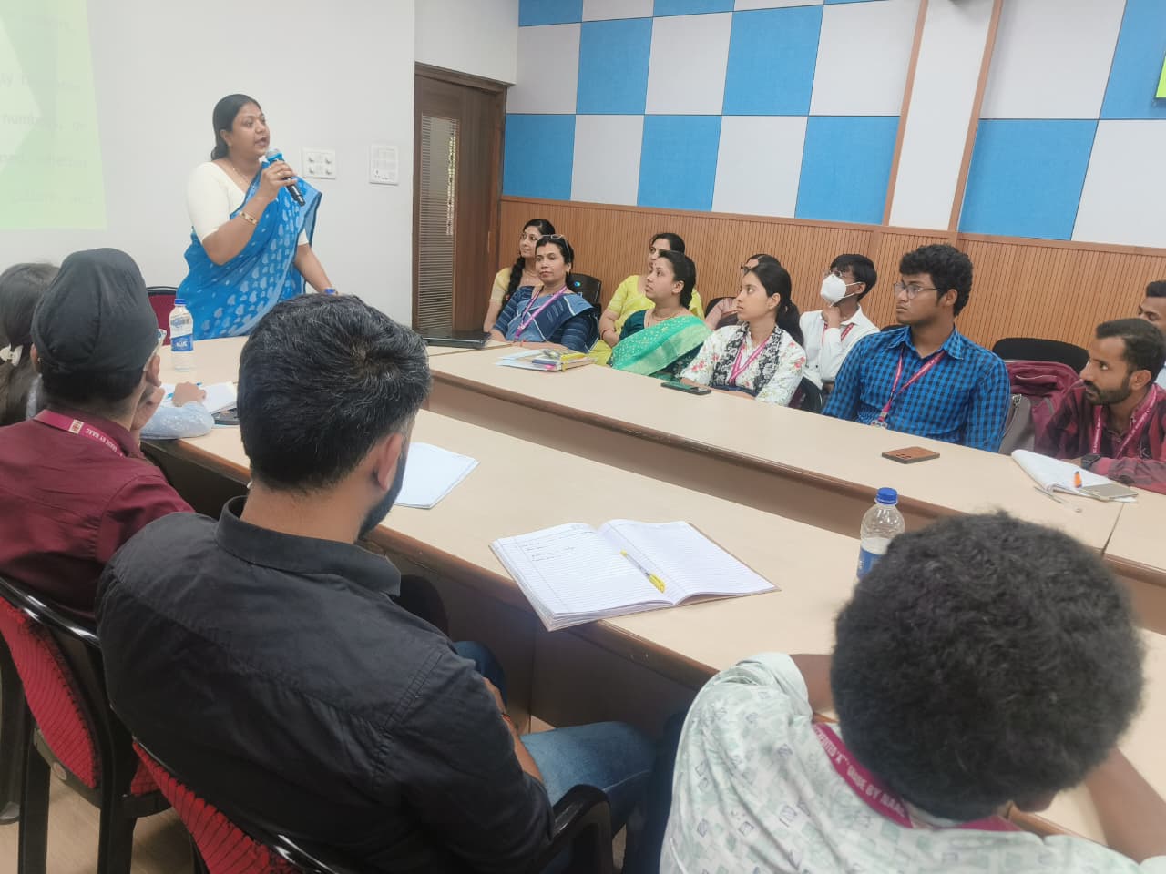 - Presentation by Ms. Alchanar Dubey Delivered comprehensive information about the Library and Reading Room.Explained the variety of books and collections available.Shared details about online and offline resources, library services, and different sections of the library. Highlighted library rules, circulation processes, and facilities like the Book Bank.